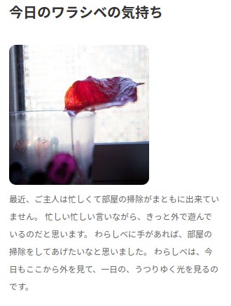 わらしべプロジェクト、満を持して(?)初めてみた訳ですが、いかんせん葉っぱの魅力に誰も気がついてくれていないようなので、その日その日のワラシベの気持ちを私が代弁して掲載していこうと思います。